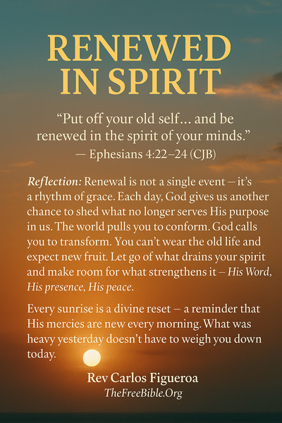 Renewal is not a single event — it’s a rhythm of grace. Each day, God gives us another chance to shed what no longer serves His purpose in us. The world wants to define you by your past — your failures, your regrets, your habits — but Christ calls you by your future. He says, “Behold, I make all things new.”