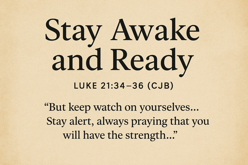 Jesus calls us to live differently — not frantic, but focused. Not fearful, but faithful. To be awake is to walk with spiritual awareness: to notice when your heart grows cold, when your joy fades, or when your priorities shift from eternal to temporary things.