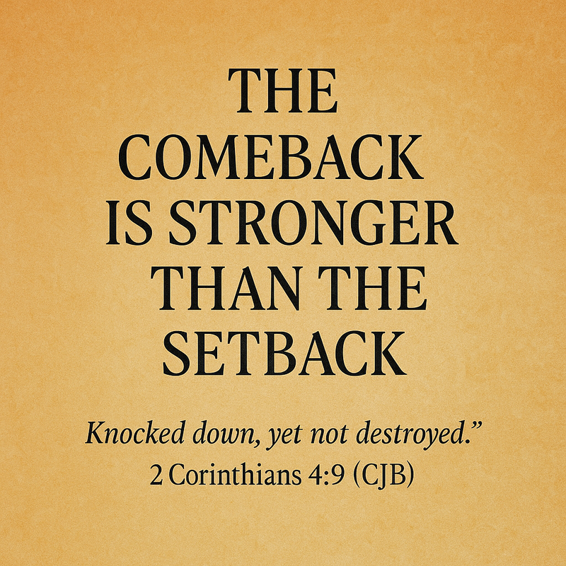 When you face a setback, remember—it may knock you down, but it cannot destroy you. If Christ is in you, then the power that raised Him from the dead lives in you (Romans 8:11). That means your comeback will always be stronger than your setback, because your strength comes not from yourself, but from the Lord.