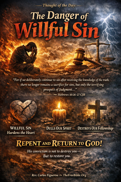 “For if we deliberately continue to sin after receiving the knowledge of the truth, there no longer remains a sacrifice for sins, but only the terrifying prospect of Judgment…” — Hebrews 10:26–27 CJB