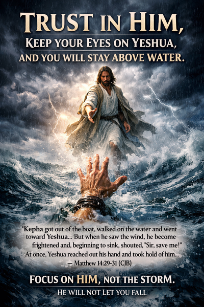 Keep your eyes on Him. Not on the situation, not on the noise, not on what could go wrong. Fix your focus on Yeshua. Even when you feel like you’re starting to sink, He is right there—ready to grab your hand.
